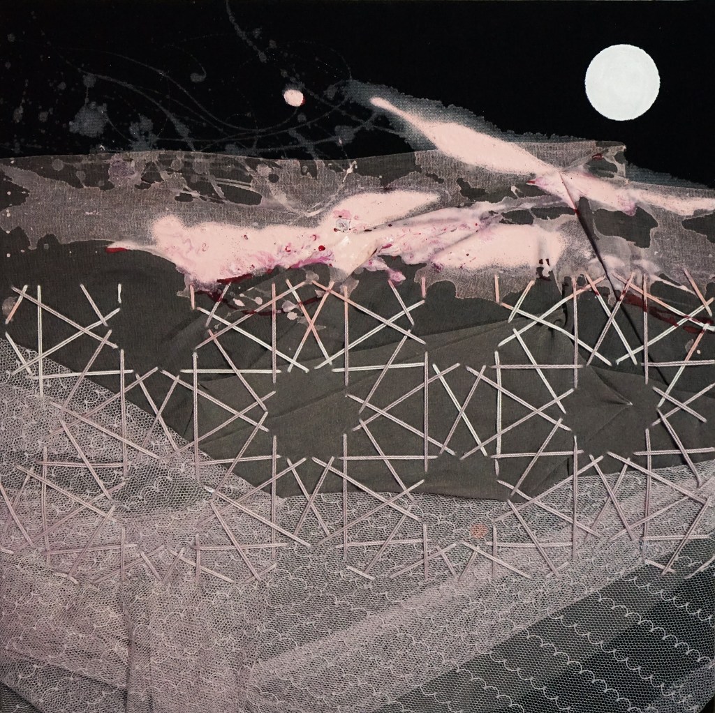 The surreal artwork that got her to the pedestal of success is a mixed media; embroidery using threads, textiles, and paint, which was developed in 2015. The unique embroidery technique she fused in her paintings was inspired by her skill in mending her own clothes. She applied the techniques to her visual installations creating depth, multi-textures, and a vision of infinity by employing the arabesque geometrical art interpreting humanist themes and undertones, now decorating empty ordinary buildings, and walls to framed artworks in museums. Her first solo painting was in 2017, just two years after she discovered her embroidery medium. She already won several awards such as “Artist of the Year”, “Painting of the Year”, and the Gold Award, when she participated in artist exhibitions in Thailand and toured with her paintings to countries like Malaysia, Singapore,