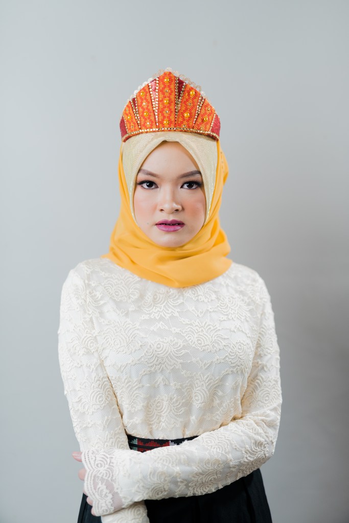 “Being a hijab stylist I decided to use sukip as my main material and made a design that will match the scarf and let the new generation appreciate the sukip in this way I will able to help the local maranao weavers in our place. Using this material as a scarf accessory is not that easy. You need to be creative in designing the SUKIP that will perfectly fit the head and can be easily attached to the scarf.”
