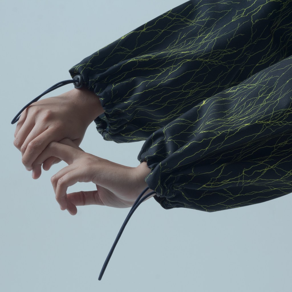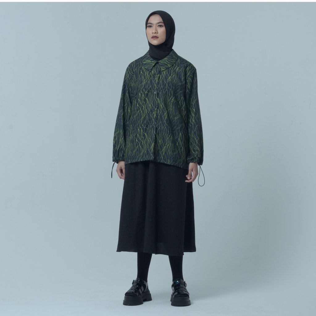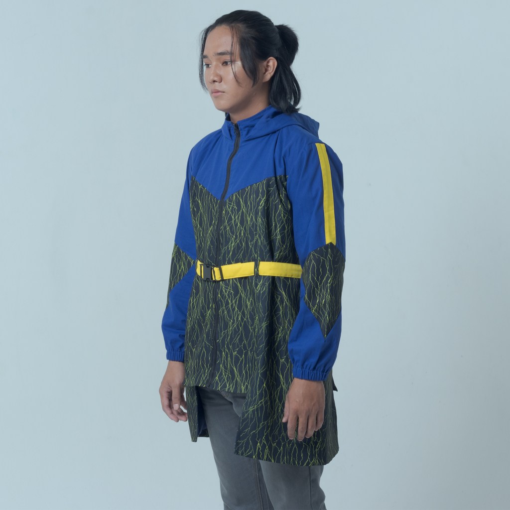 Structured raglan jacket and a jogger, which Putri expertly arranged neatly. The colors are beautifully merged into a pleasant eye-candy. Neon a dynamic color but is neutralized with grey and white and delightfully finished off with the colorful print accent.