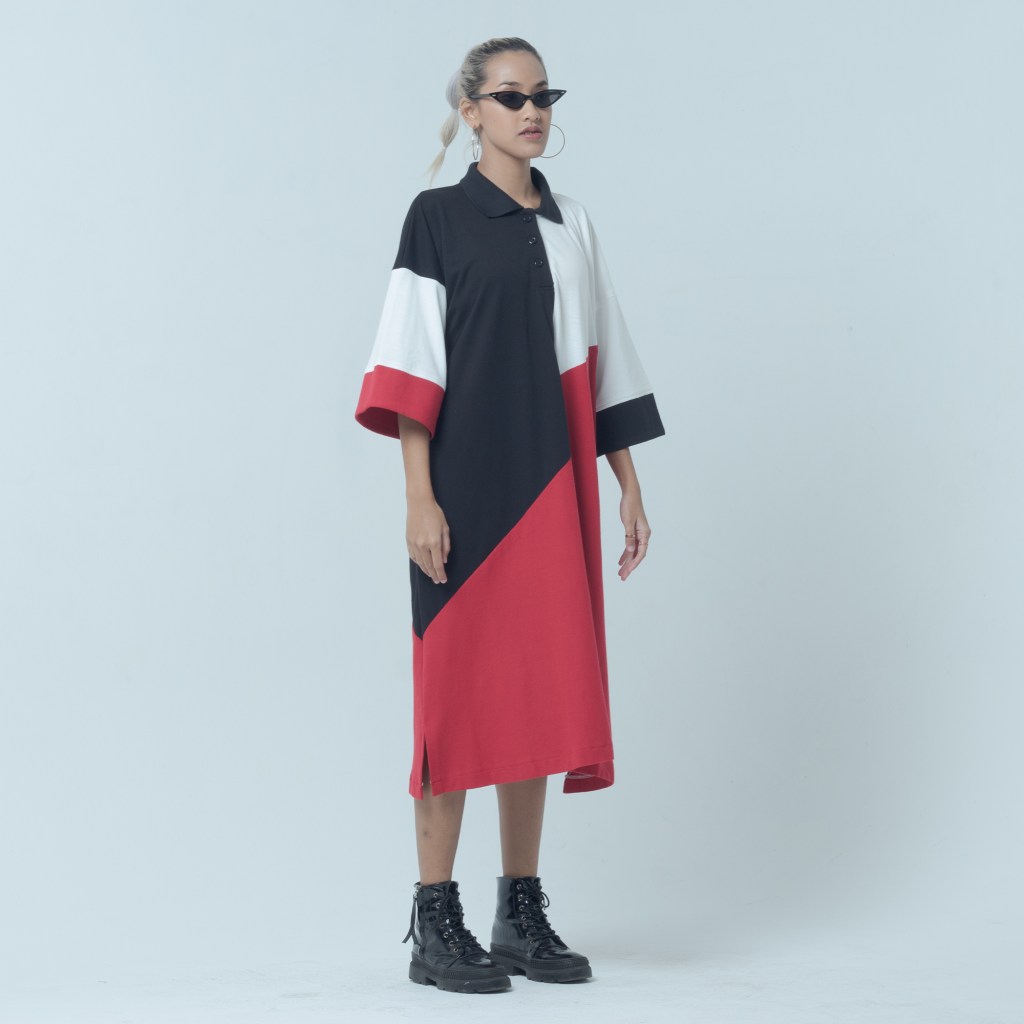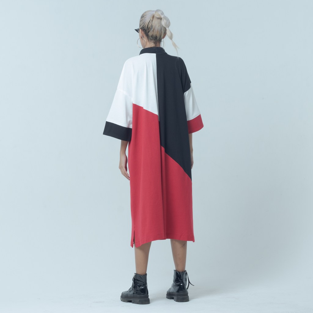 Color- blocked tent midi shirt dresses gives an instant casual playful look.