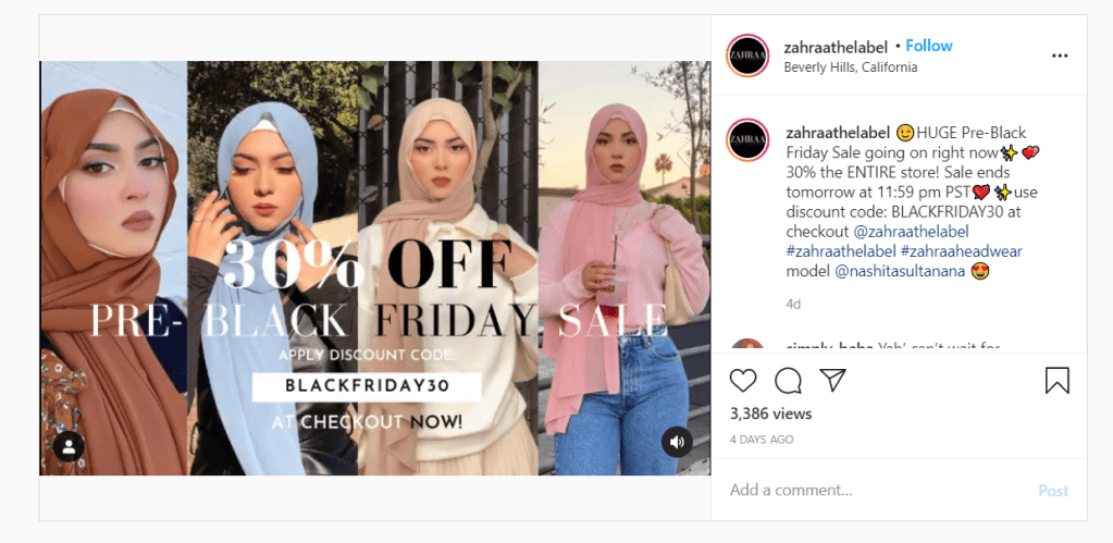 Muslim American is a description, yet Zahraa The Label seeks to label themselves as Californian. The brand is based in California and it labels the representation of being a woman with a head scarf, as it says on the Instagram bio: ‘.. your Hijabi fix…’