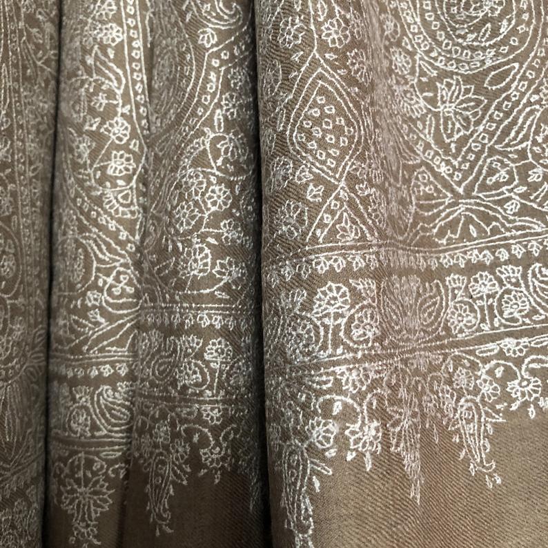 The most coveted Pashminas are those with embroidery style called Sozni, an almost extinct art of delicate needle-work embroidery (from the word “sozin” which means needle). It was introduced to the region by Mir Syed AlHamdani or commonly known as Shah Hamdan, in late 14th century by employing 700 Persian artisans to come up with ways to decorate the Pashmina shawls that were produced in the Ladakh region.
